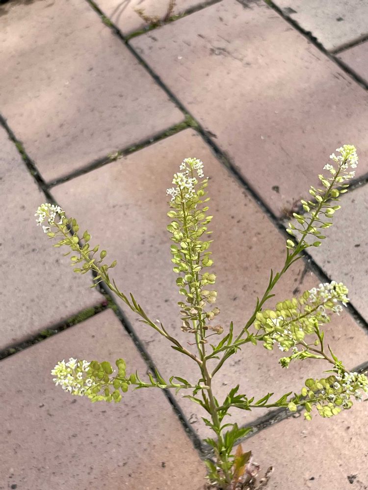 タイル張りの道路の隙間からこれだけの"ど根性者"が頑張って咲いてました。何処から来るのやら😅