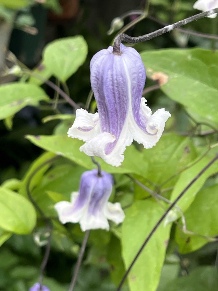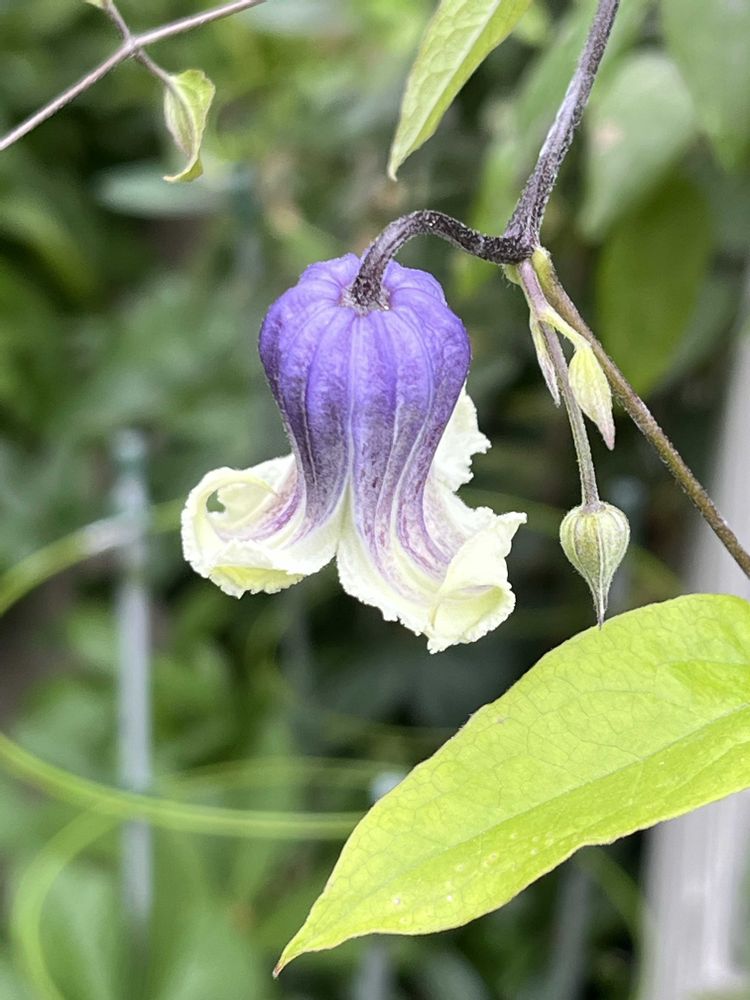 クレマチス、誘引が苦手すぎて巻く事ができないので、ジャックと豆の木状態なんです……