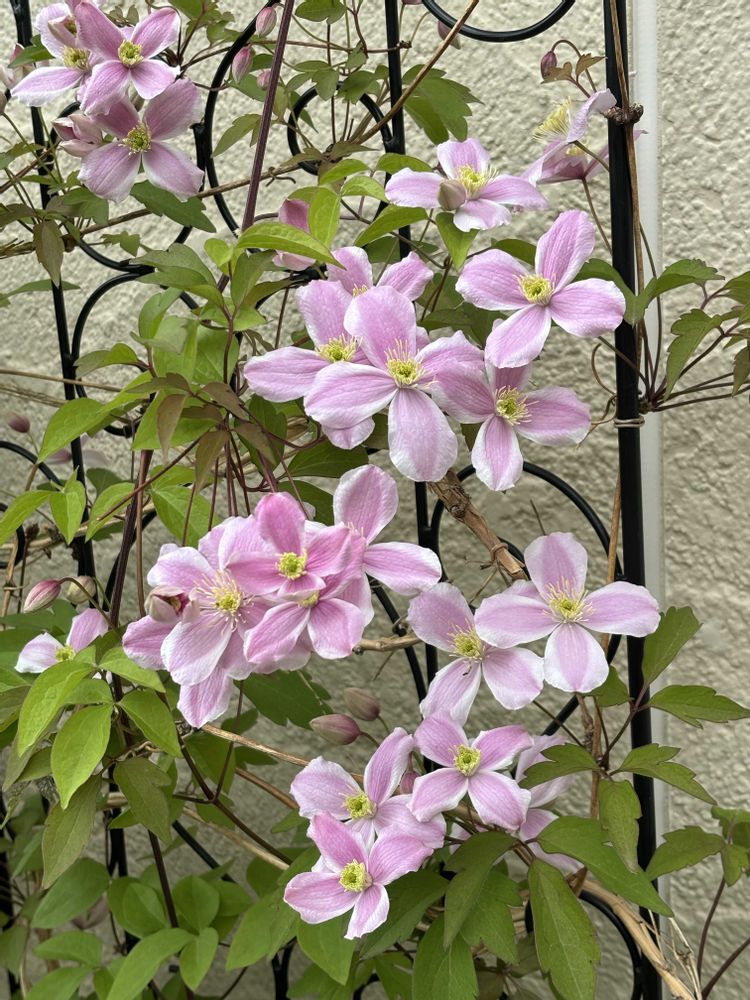 今日ちょうどこのモンタナさん、伸びた蔓を誘引したところです♪♪
