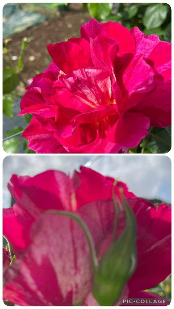 赤にピンクの絞りふわっと可愛い咲き方です