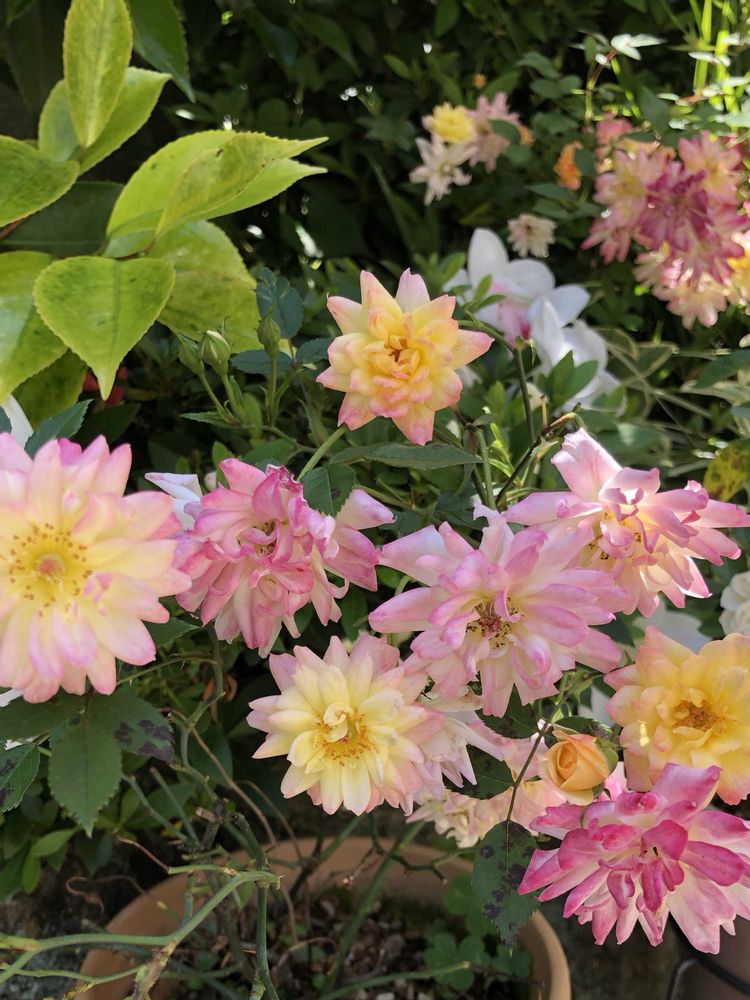 小さな庭で花壇が無いので 寄せ植えや寄せ鉢でお花達に癒されています^ - ^♡