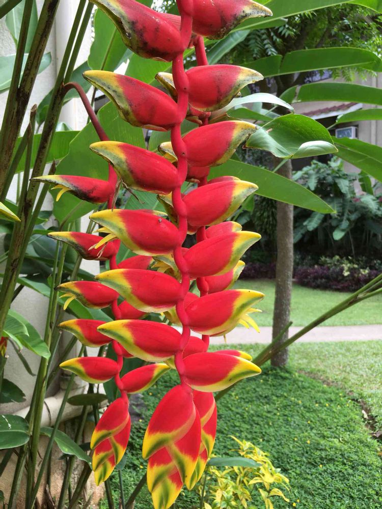 庭師さんに聞いたら、Bird of paradise と言ってました。楽園の鳥?たくさんあるヘリコニアの中でも、ひときわ好き😍