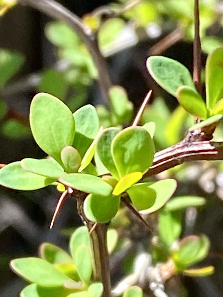 公園の入り口でこの紅葉した葉❤️が目にとまり、近づくとトゲがあるのでメギだと分かりました。
