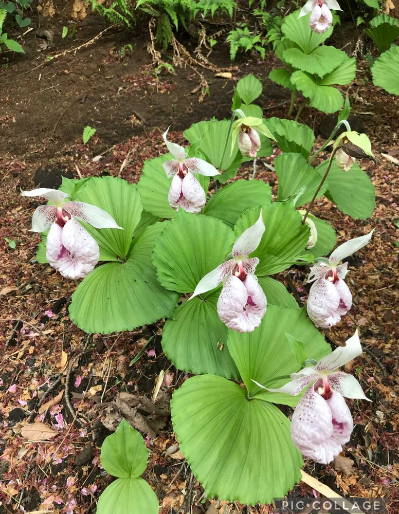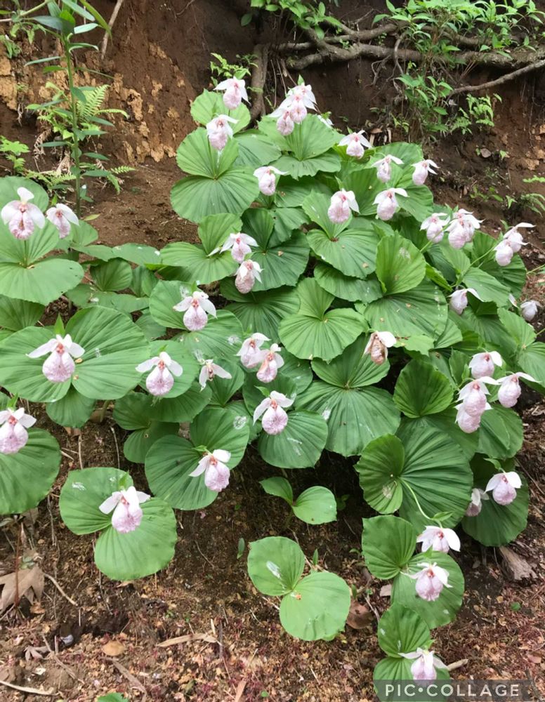 オープンガーデン仲間の岡本農園さんの崖に群生していたクマガイソウです。