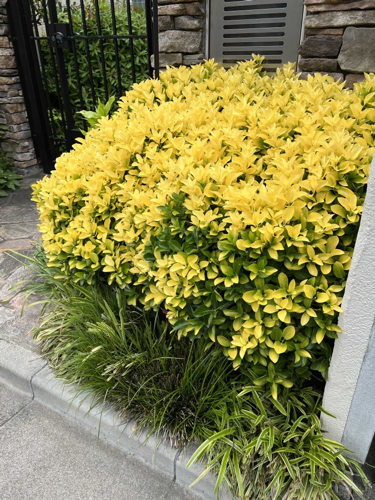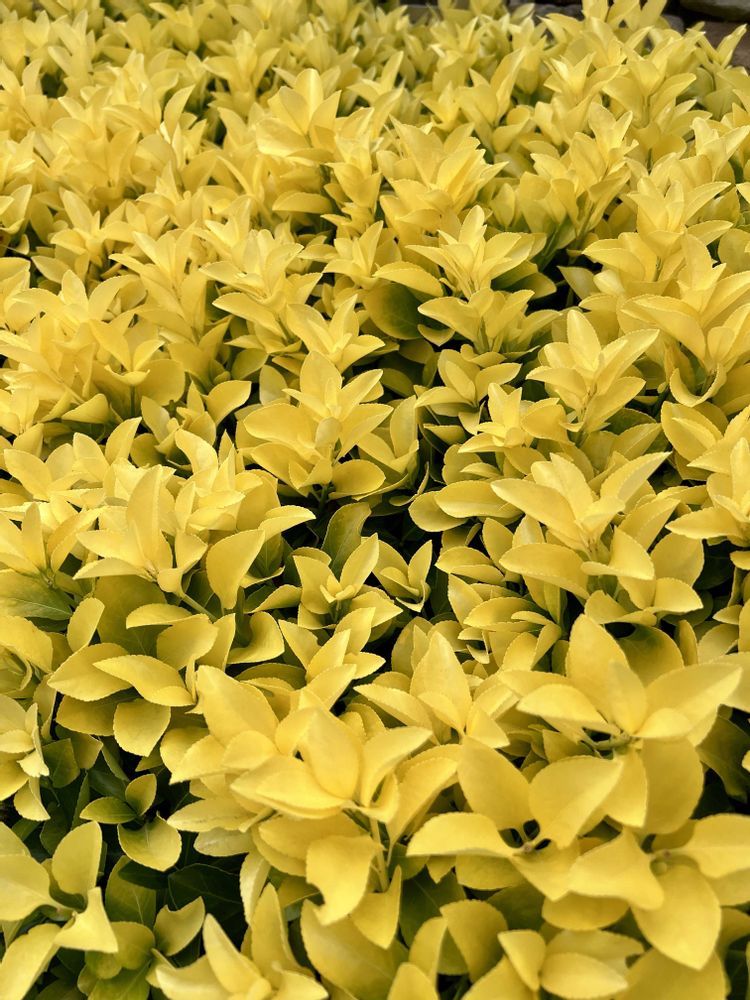 あのマサキの種類なんですよ〜、オウゴンマサキさん! 下側にお馴染みのグリーンの葉っぱがチラ見えしてます。こんなに綺麗なカラーリーフに変身ってビックリですね、知りませんでしたー💛