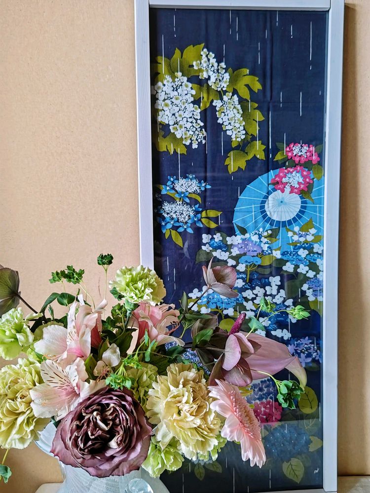 鯉のぼり🎏の絵手ぬぐいから、紫陽花の絵手ぬぐいに。