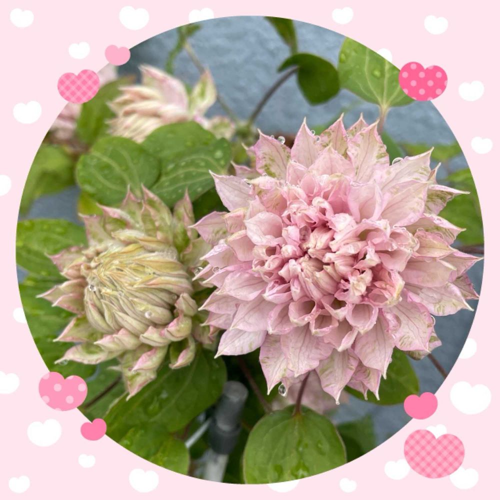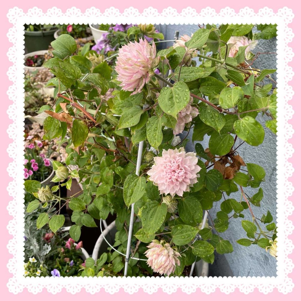 クレマチス春姫がやっと咲きました♬モコモコかわゆす〜😍♬