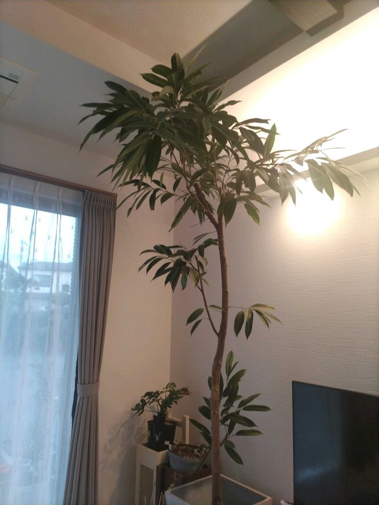 昨日二世帯の息子からフィカスアムステルダムキングをこちらのリビングにいただきました。18000の木です。