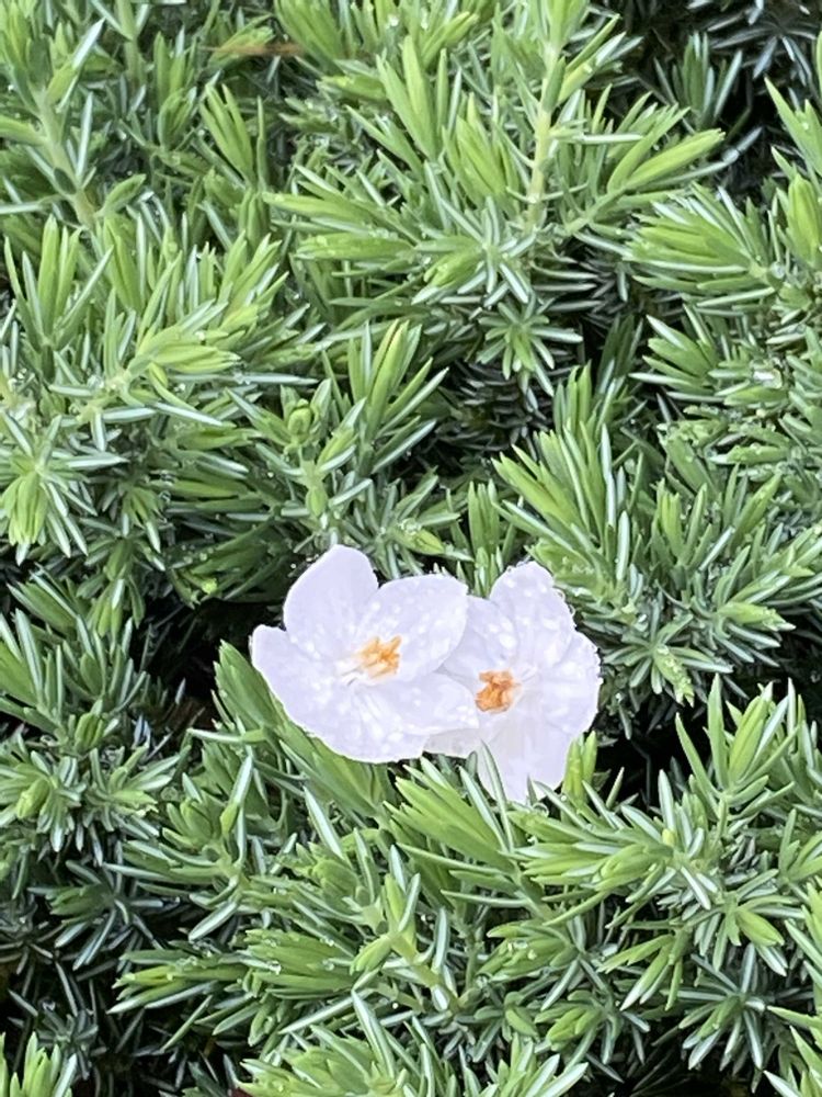 足元のグラウンドカバーに落ちたお花がまるで咲いているかのよう…