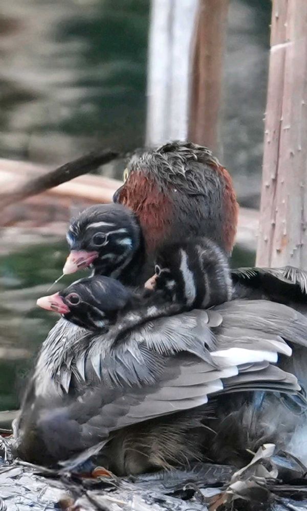 カイツブリの親が、雛たちをおんぶしてるなんて( *´艸`)💕