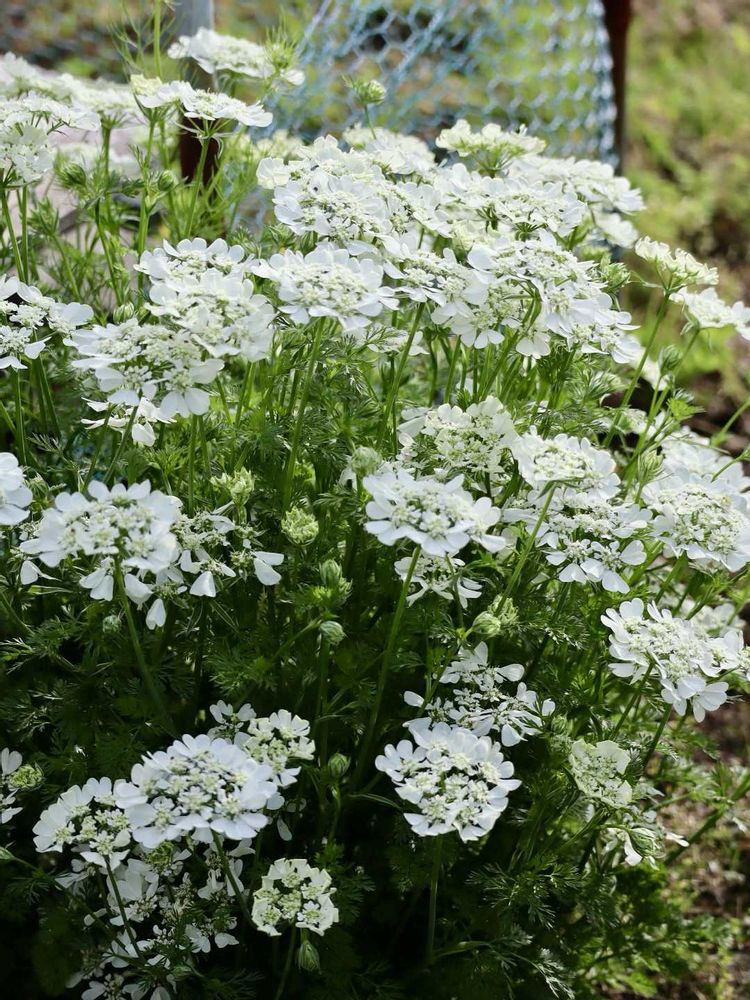 零れ種から、庭のあちこちで真っ白な花を咲かせているオルレア、清々しくてたくましい花ですね。