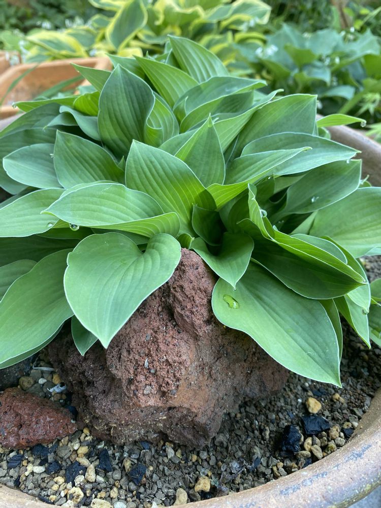 (´∀`*)ウフフ~何かユニークな鉢だね🎶何かロックガーデンに自生しているホスタみたいで楽しいね♥️