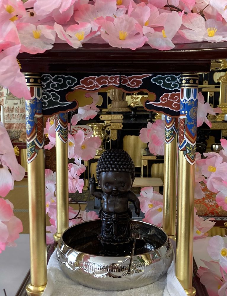 花祭りの催しがあって甘茶をいただいて☕️お釈迦に甘露水をかけてきました。
