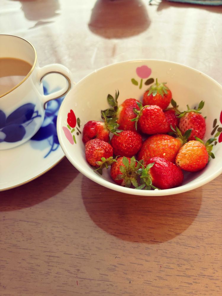 気付けばハゴロモジャスミンも終わりかけ、赤く実ったイチゴ🍓は写真撮らずに食卓上☕️に。