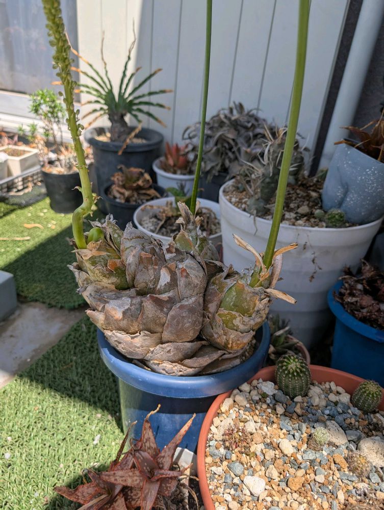 ⚫サボテン、アロエ、塊根など。 ⚫たまに「いいね」押してます。 --------------------------------------------------------- 【19.08】19年8月頃から徐々に多肉植物・サボテンの魅力に取り憑かれてしまいました。 【19.10.22】グリーンスナップを始めました。 【21年~22年】冬越しをほぼ室内避難しないチャレンジ。 【我が家の多肉植物・サボテン・観葉植物】220506時点 662/878 【セダム】3/6 ×春萌(19/11/3) ×プロリフェラ(20/2/1) ×薄化粧(20/2/5) ・※虹の玉(20/2/6) ・※虹の玉?乙女心?(20/2/6) 6・※黄麗(月の王子)(20/3/5) 【チレコドン】2/5 ×ブッコルジアヌス(19/11/3) ×スカエフェリアヌス 群卵(20/3/4) ×万物想(レティキュラーツス)(20/9/4) ・万物想(レティキュラーツス)②(20/10/2) 5・ワリチー(20/10/8) 【クラッスラ】10/17 ・天狗の舞(19/11/3) ・紅稚児(19/11/3) ×姫花月(19/11/3) ・テトラゴナ(19/11/12) ・火祭り光(19/12/4) ×花月錦白斑(19/12/4) ×※花月(金のなる木)(19/12/12) ・神刀錦(20/1/8) ×キムナッキー(20/1/10) ×10・※メセンブリアンセモイデス(ラージフォーム)(20/1/23) ×※花月?黄金花月?⇒火祭り錦?(20/1/23) ・巴(20/2/27) ・※火祭り(20/3/5) ・ゴーラム(20/12/16) ・神刀(20/12/24) ×アイボリーパゴタ(20/12/24) 17・spトランスバール ドラケンスバーグ(20/12/24) 【カランコエ】1/19 ・錦蝶(19/10/19) ×不死鳥錦(19/10/24) ×カーニバル(19/12/4) ×※月兎耳?(19/12/26) ×唐印(19/12/28) ×テディベア(20/1/10) ×ファング(20/1/11) ×ミロッティー(20/1/23) ×※黒兎耳?月兎耳?(20/2/6) ×10・※胡蝶の舞(20/2/6) ×星兎耳(20/2/12) ×ゴールデンバニー(20/2/12) ×福兎耳(20/2/12) ×姫黒兎耳(20/2/19) ×※シナモン?孫悟空?(20/2/19) ×キューエンス(20/2/19) ×※月兎耳(20/2/20) ×黒兎(20/2/20) 19×シナモン(20/2/21) 【センペルビウム】13/17 ×巻絹(19/9/6) ・パシフィックナイト(19/9/14) ・※百恵(19/12/12) ×※高嶺の華(19/12/12) ・※綾桜(19/12/12) ・※ファイヤーバード?パルグラム?(19/12/12) ・※レッドチーフ?ウラヌス?(19/12/12) ・※シャンハイローズ?(20/2/4) ・※神風?(20/2/4) ×10・※綾桜?(20/2/4) ・※麗人盃?(20/2/4) ・※雪牡丹?(20/2/4) ×※紅牡丹?(20/2/4) ・※ラウンドシーン?(20/2/4) ・※巻絹?(20/2/6) ・レッドベル(20/2/19) 17・※ご近所さん(20/5/17) 【ガステリア】39/43 ・春鶯囀バテシアーナ(19/11/20) ・グロメラータ(19/11/20) ・臥牛(19/11/20) ・リリプターナ(子亀姫)(19/11/20) ・白星竜(ベルコサ)(19/11/20) ・錦沙戸宝(19/11/20) ・ニティダ(19/11/22) ・フロッキー(19/11/22) ・姫子宝錦(19/11/24) 10・虎鉾(19/11/24) ・富士子宝錦(19/11/26) ・照姫(19/11/27) ・恐竜×大桑臥牛(19/11/29) ・颯々の松(19/11/29) ・ドラゴンスキン(19/12/2) ・名前不明⇒グリーンワイパー(19/12/4) ・黒鶯囀(19/12/4) ×臥牛錦 糊斑(19/12/4) ・白臥峰ダルマタイプ(19/12/4) 20・バイリシアナ×グロメラータ(19/12/10) ・ピランシー錦※斑多め(19/12/24) ・ピランシー錦※斑少なめ(19/12/24) ・臥牛竜(19/12/24) ・グラキリス(虎の巻)(19/12/25) ・ホワイトパール(20/1/7) ・白銀水牛(20/1/7) ・エクセルサ(20/1/8) ・ダルメシアン(20/1/10) ・タワー(20/1/23) 30・クロチェリー(20/1/23) ×ニグリカンス f.dark monstrosa(20/2/27) ・金剛殿(20/2/27) ×ラウリンソニー(20/3/13) ・幅広ピランシー(20/4/7) ・恐竜×白点臥牛(20/4/7) ・恐竜(20/11/9) ・ラウリンソニー②(20/11/19) ・恐竜②(21/1/12) ・恐竜×春鶯轉(21/1/13) 40・ホワイトパール②(21/1/13) ×ラウリンソニー③(21/2/10) ・エレフィアエ(21/4/13) 43・臥牛②(21/6/14) 【ディッキア】49/52 ・ハイブリッド(19/11/6) ・(アリソナ×マルニエルラポストレイ)×ボーン(20/2/21) ・アリゾナ(20/3/13) ・ニッケルシルバー(20/3/13) ・縞剣山錦(20/3/18) ・(ケリー×マセドイ)×ヘブディング ビッグブルーF1(20/3/24) ・ターザン(20/7/15) ・ゴエリンギー(20/7/15) ・エステベシー(20/7/16) ・グランマルニエル スノウ(20/8/21) ・ダウソニー(20/9/9) ・コリスタミネア パープルフォーム(20/9/16) ・マイケルアンドレス(ブリットルスターF3)(20/9/16) ・ゴエリンギー レッドクローン×ターザン(20/9/18) ・ターザナ(20/9/18) ・レッドボーン×スカイウォーカー(20/10/27) ・グランマルニエル(20/11/4) ・トゥーシ―F2(シルバークローン)(20/11/4) ・グレイオプス(20/11/5) 20・タイニーレッド×ヘブンアンドヘル(20/11/5) ・マルニエルラポストレイ エステベシー シーディング ブラジル(20/11/5) ・(レッドシャーク×ディストーション)×ジョーズ(20/11/5) ・ブラックアイス(20/11/6) ×ダウソニー×ガーネットクロウ(20/11/12) ・デリカータ(20/11/18) ・エステベシー×ゴエリンギ―(20/11/30) ・ゴエリンギーOPS セレクト ホワイト(20/11/30) ・(ソウフィッシュ×7a)×ターザン(20/11/30) ・ベアテアエ レッドクローン(20/12/07) 30・アリゾナ×HU-5(20/12/08) ・エステベシー②(20/12/08) ・ダコタ(20/12/09) ・マルニエルラポストレイ(20/12/10) ・エステベシー×ブリットルスターF2(21/1/8) ・マウンテンオブニードルズ(21/1/14) ・エステベシー③(21/1/27) ・パラファット(21/2/10) ・ジョーズ×ドナマリエ(21/3/15) ×フォステリア×エステベシー(21/3/15) ×40・フォステリア×エステベシー②(21/3/15) ・カタナ(21/3/24) ・スノーストーム×ブライヤーパッチ(21/3/24) ・ワサビ(21/4/7) ・ブラックアイス②(21/4/12) ・ブラ