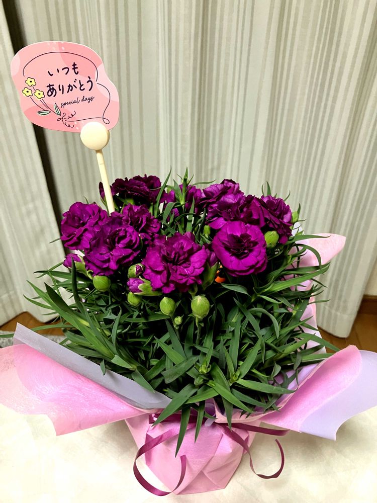 カーネーション花束💐をお母さんにプレゼントしたんじゃね😆