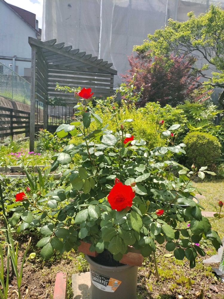 昨日投稿した朱色のバラ。全体写真。