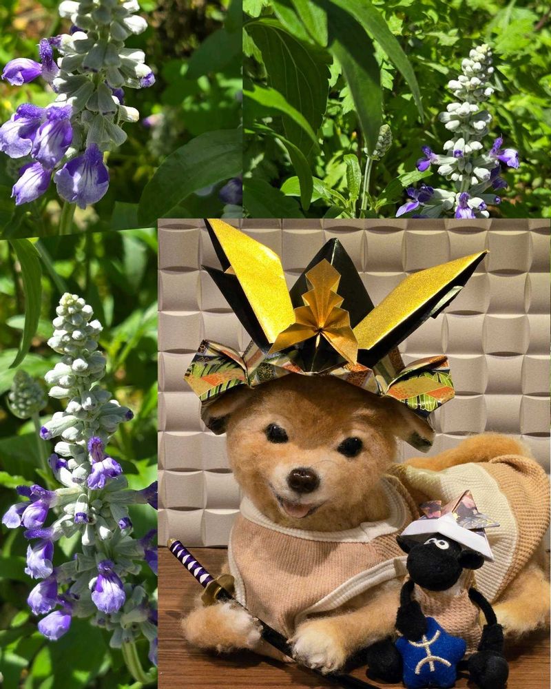 こたワンちゃん人形も兜をおとなしく被って?こたくんそっくりですね😆