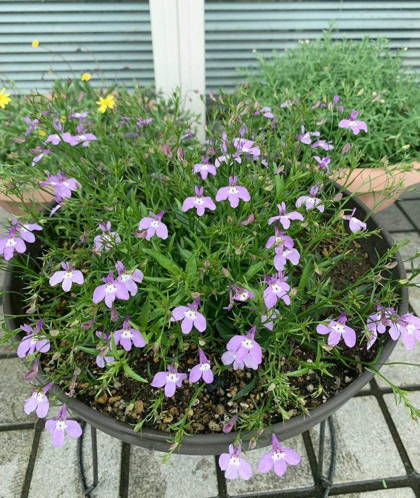 狭い庭にぎっしりバラを置いてます🪴