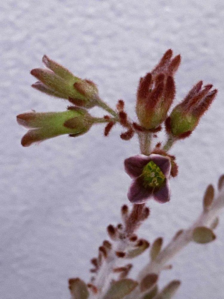 チョコレートソルジャーがビョーンと伸びて初めての開花♡➡️全体像や蕾も見てね➡️子株ちゃん葉挿しを集めて再生中です💚