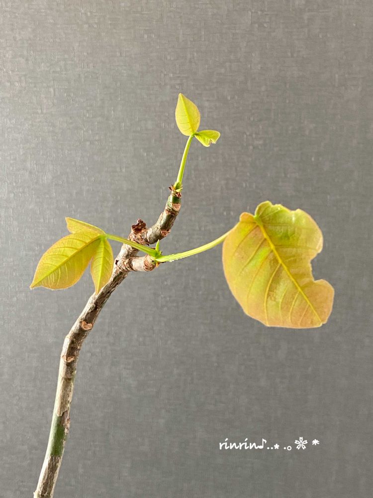 ボンバックスさんの葉っぱ、今はすっかり緑色で立派な葉っぱになりました