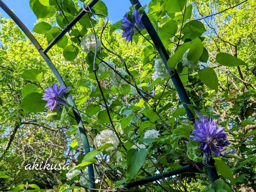 アーチにうまく絡み付かせてあげられず 成り行き任せだけれど お花が見られればとっても嬉しいです これから白も咲いて来るのが楽しみですよ〜💜🤍✨🎶