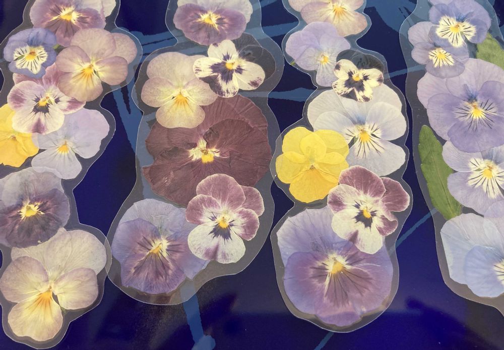 パンビオのお花はそろそろ終わりなので、押し花にしてラミネート加工。しおり🔖にしてみました。