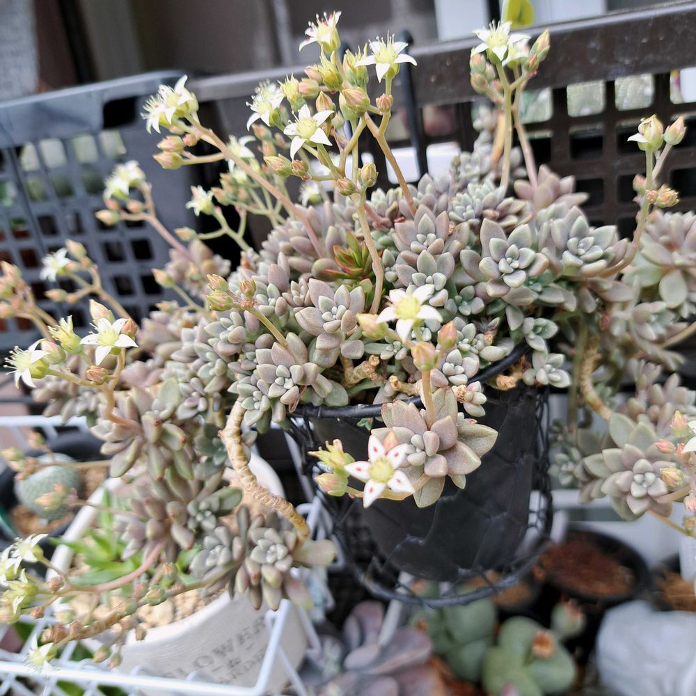 出掛ける前にベランダを覗くと小さな花が沢山咲いて可愛らしい多肉さん🤍