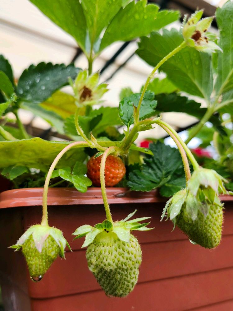 2023/12季節外れの小さなイチゴ🍓が実った。食べるには小さい。🍓から種を取って蒔いて育てた記録です。 ⚠️私がいちご🍓の種と思っていたツブツブは種ではなく、その中に種が入っていると知りビックリ。追記してます🙏。