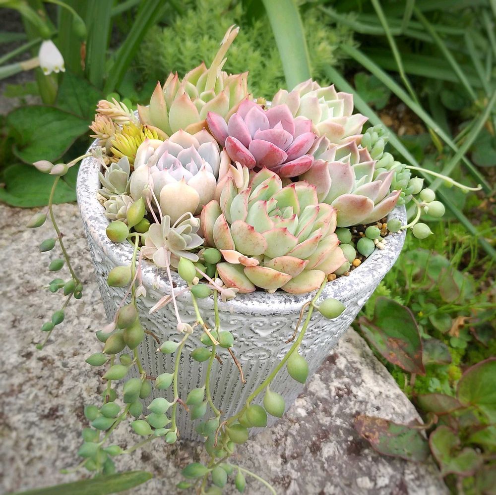 多肉植物にはまって、8年になります😊エケベリアが大好きなおばちゃん👱寄せ植えが大好きで🎶そのためにせっせと増殖しています😉