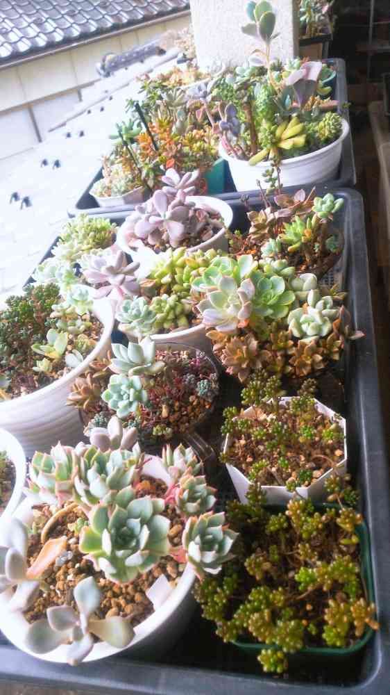 急いでベランダ手摺りに多肉バ~ンと並べ