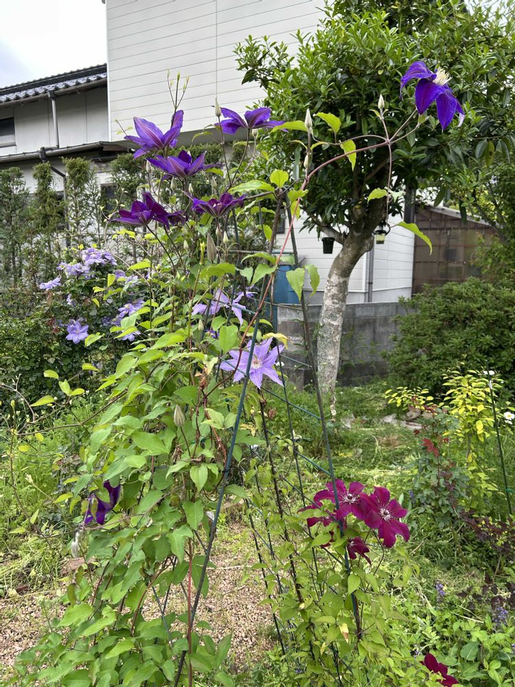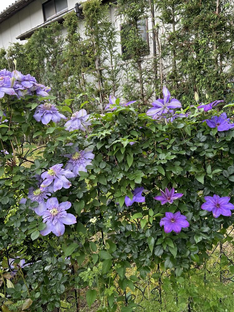 我が家のバラは🌹まだどれも開いていません😭が、クレマチスがたくさん咲き始めました♪