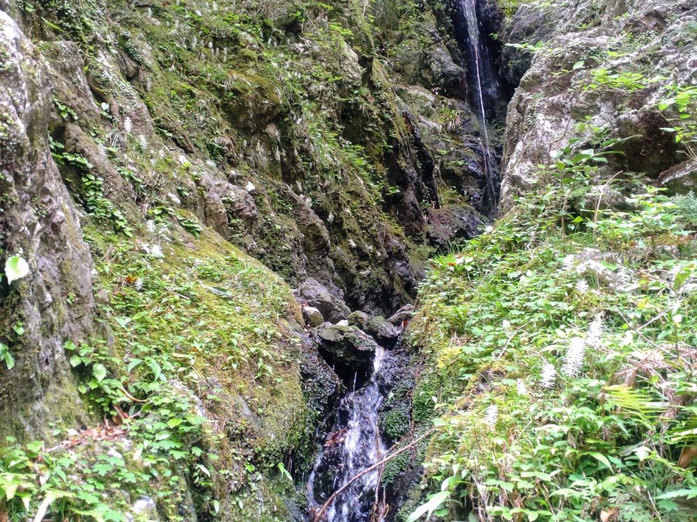 水湧き出す岩場の両サイド下から上までびっしり