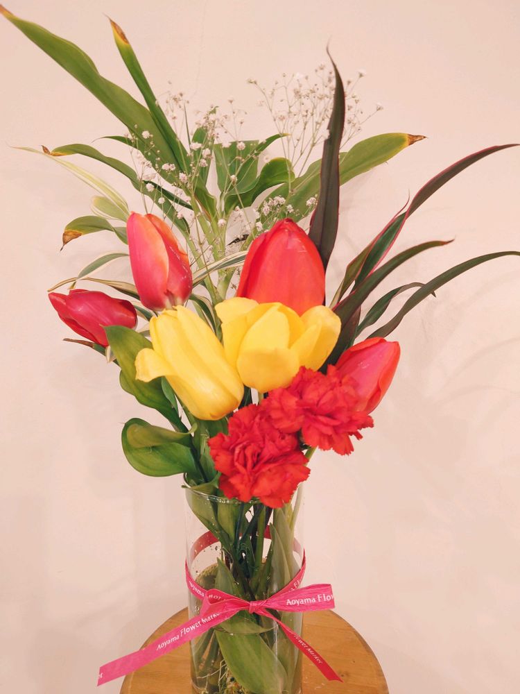 カーネーションとチューリップの2色コラボでむっちゃ豪華になりました!