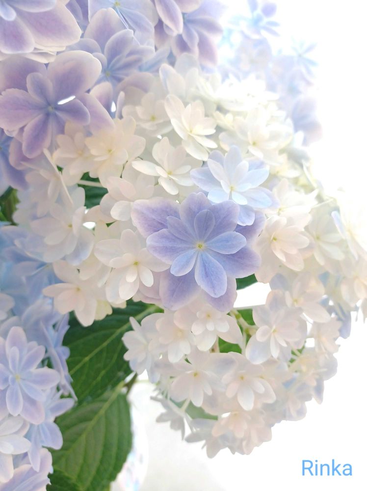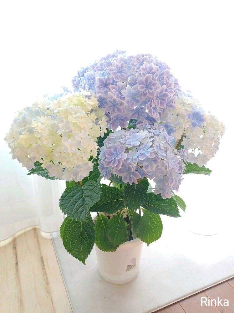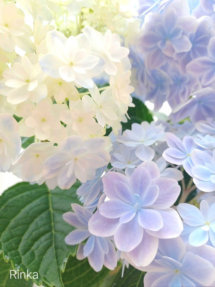 紫陽花のこの色合いが目に入るたびに、ふわりと心に柔らかいベールがかかるように和みます😊🤍🩵💙