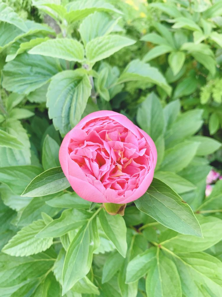 花びら一杯で色も素敵なシャクヤク🌸🌿
