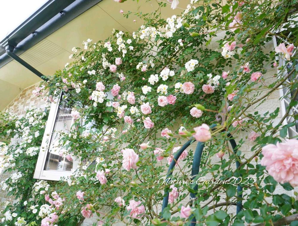 壁面も今年はランブリング&ジュランビルが沢山お花をつけてくれて良い感じに