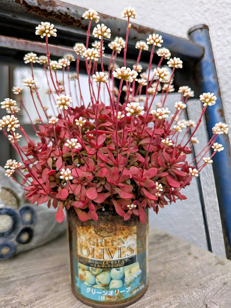 小さな缶に植えた紅稚児☆一体いつから植え替えしてないのか…思い出せない笑…が!今私の庭で1番愛らしい♡