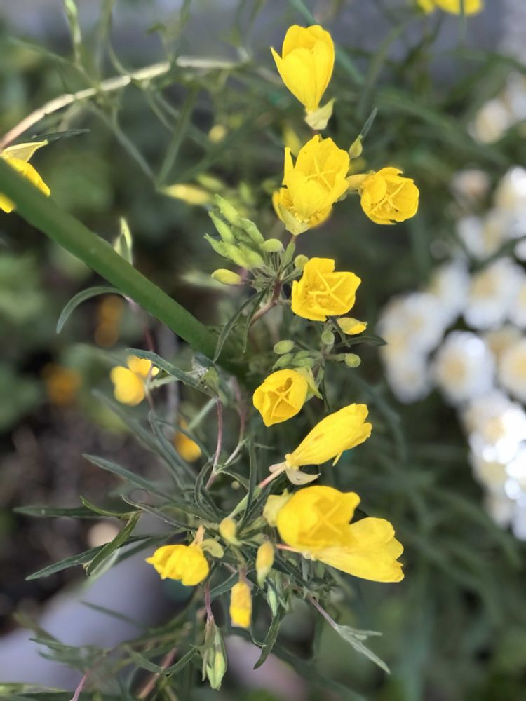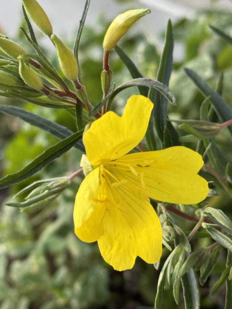 エノテラアフリカンさんは昼咲で仲間の月見草は夜咲、待宵草も仲間だそうです💛💛🤍🪴