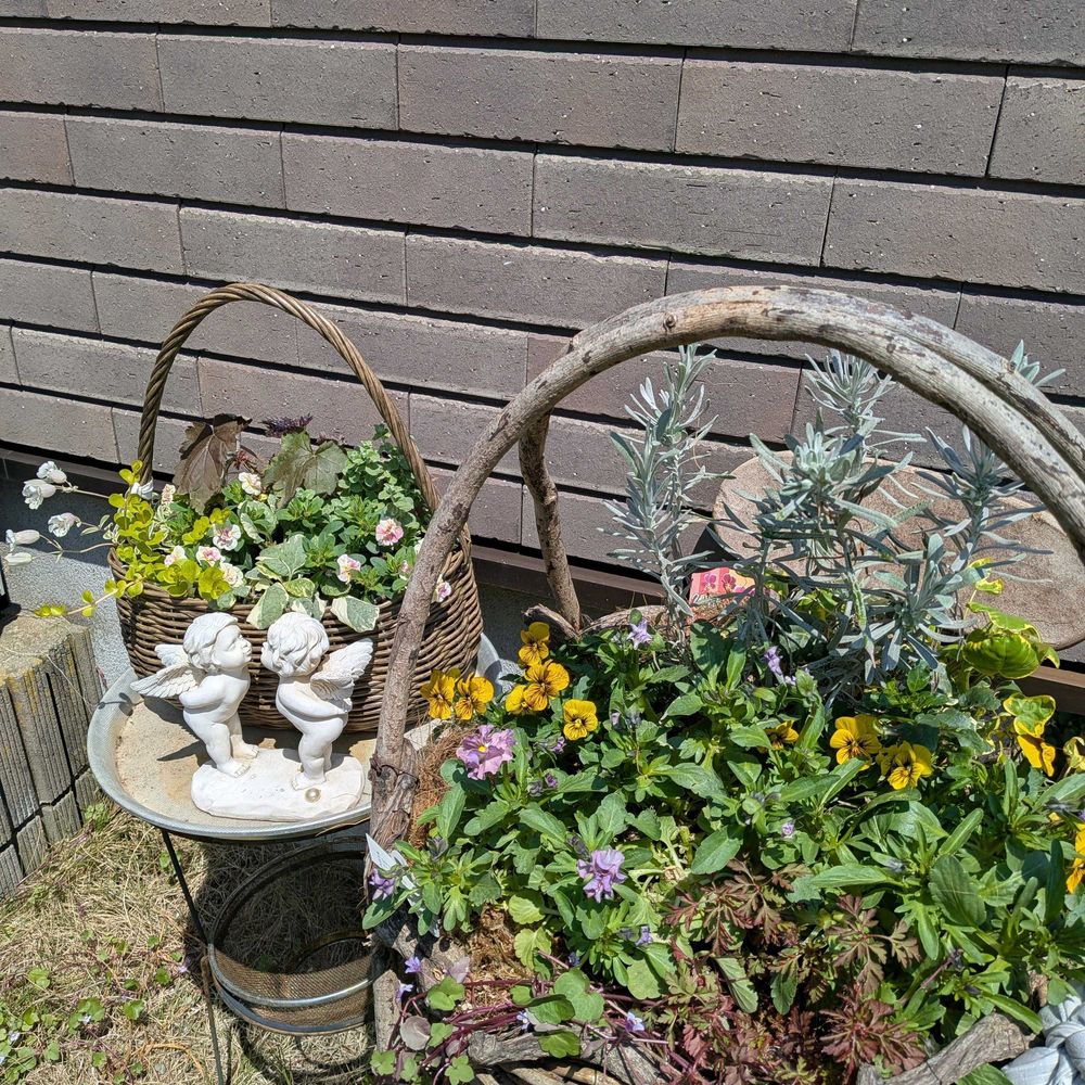 2枚目も、別なビオラCOCOと、タイガーのアイの寄せ植え