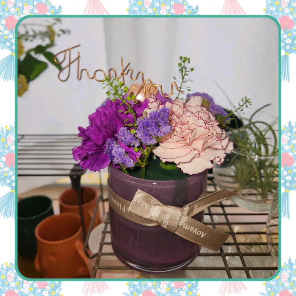 ラッピングについてたリボンを巻いてキッチンの出窓に☺️