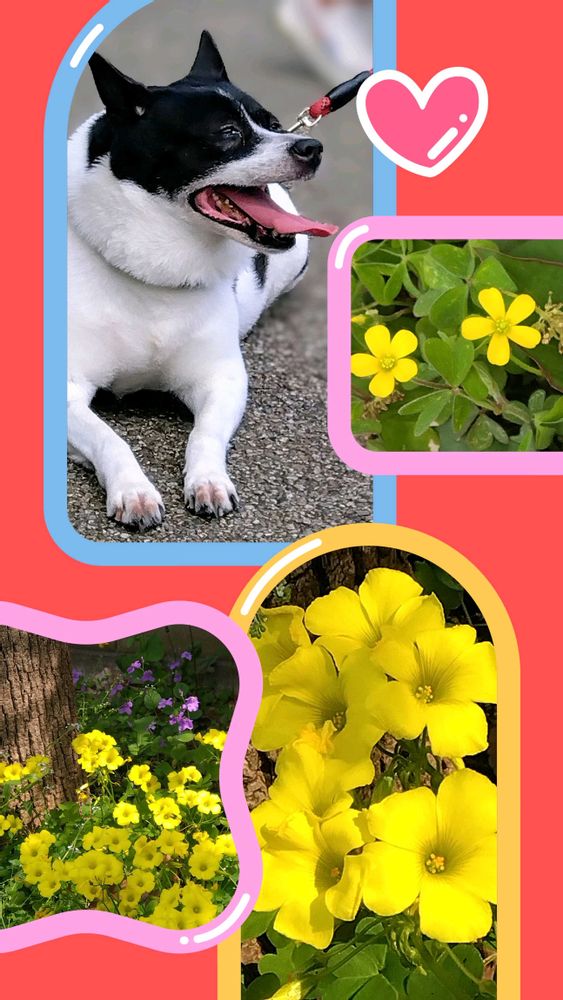 公園で出会ったオキザリスと精悍な感じのワンコ