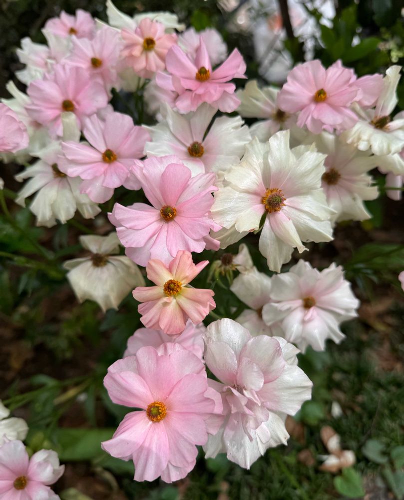 ピンクの濃淡が可愛いマーガレットのお花達✨その中に斑入りの美しい葉っぱもモリモリ出てきて、アレンジのようでした✨🎶🌸🤍☘️🤍🌸💐