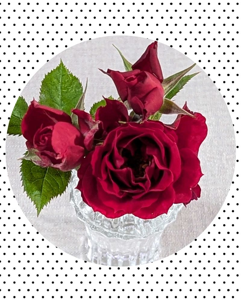 レッドのミニ薔薇がとても混み合って窮屈そうだったので、カット✂️して飾りました🥰