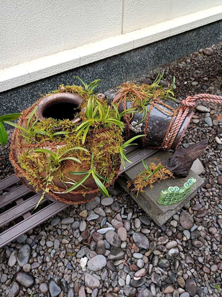 私も素焼きのタコ🐙壷に風蘭を着けた事があります。甕や大きな壷⚱️に着けた風蘭、咲いて来たら又 upお願いします。