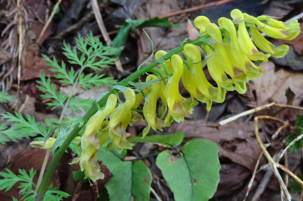 ミヤマキケマン、林道の峠付近にヒトリシズカと一緒にたくさん咲いていましたが、ウラジロヨウラクのピンクは見当たりませんでした😅