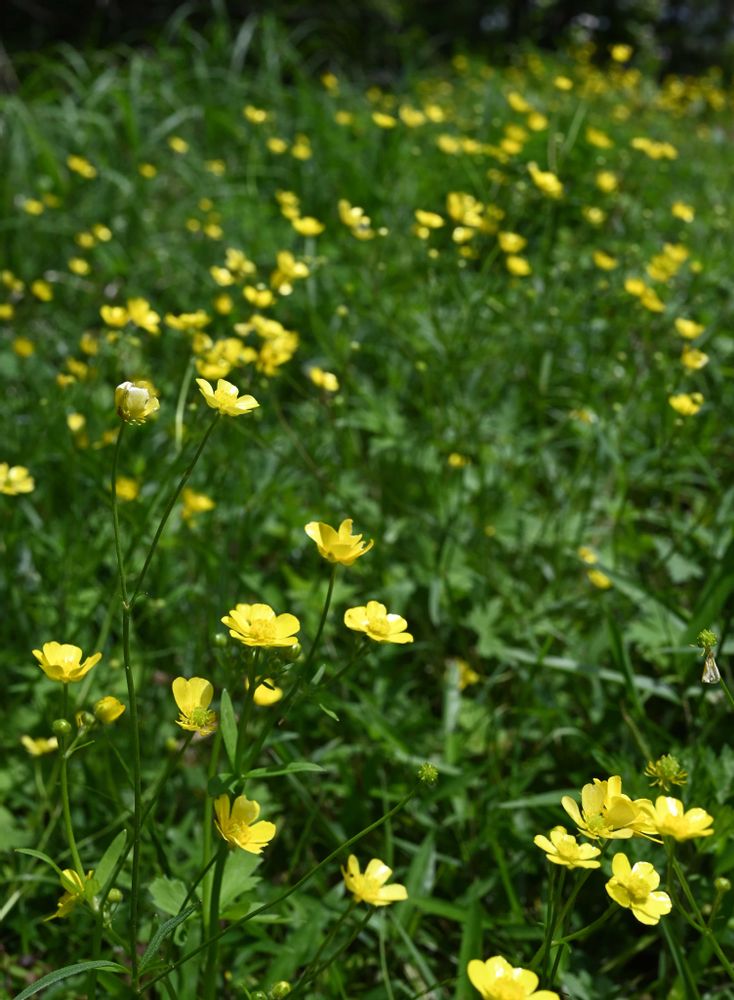 低山ハイクの山頂には、ウマノアシガタが大勢で出迎えてくれました✨💛🎶