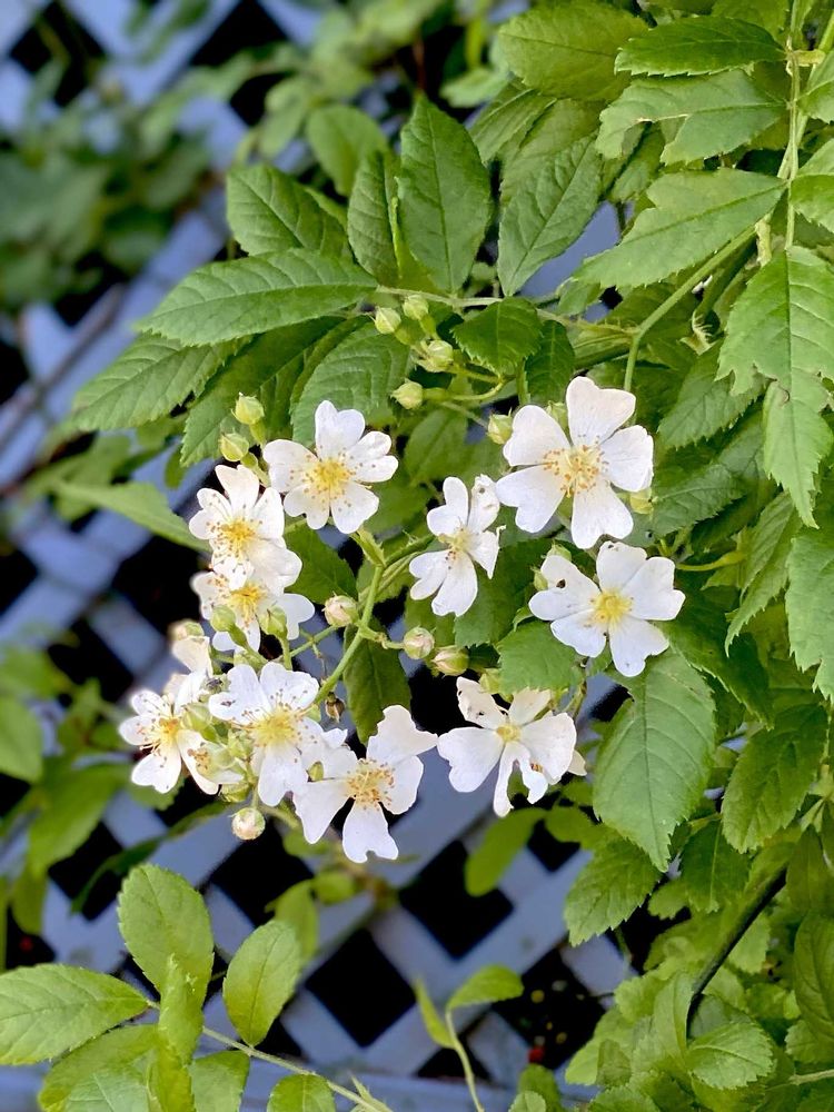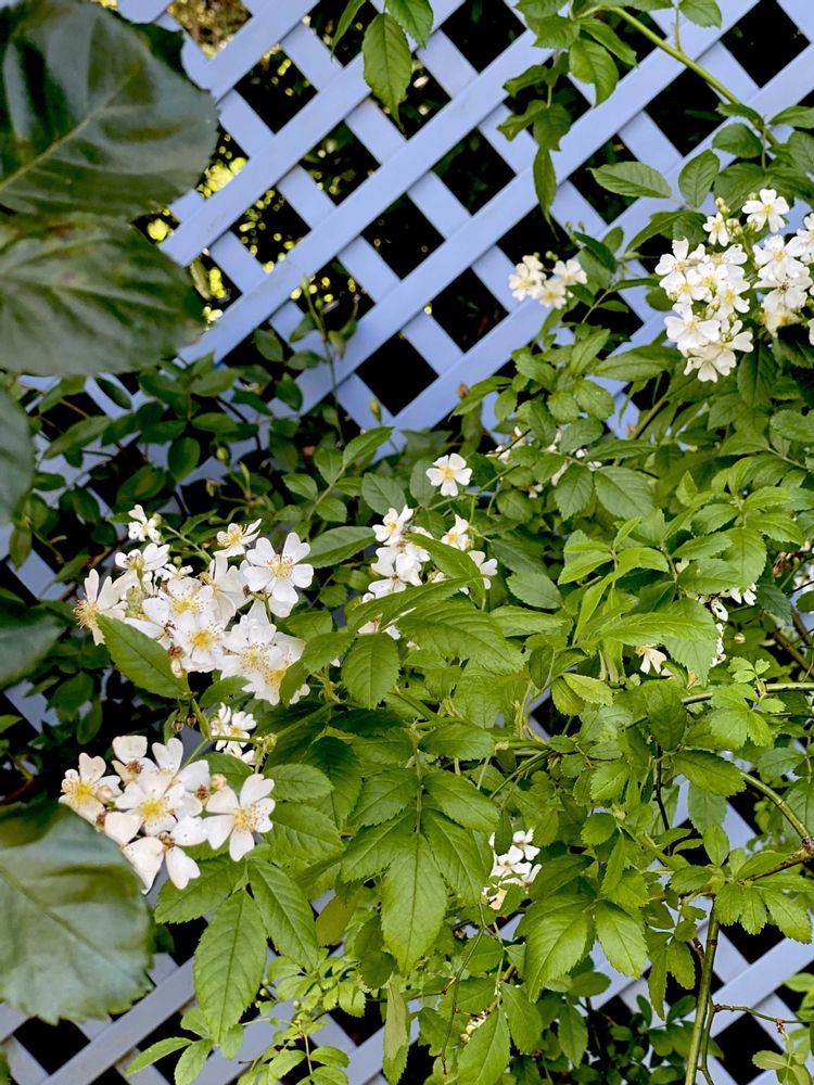 おっしゃる通り、背景のグレーがかった水色トレリスがとても似合ってますね〜✨