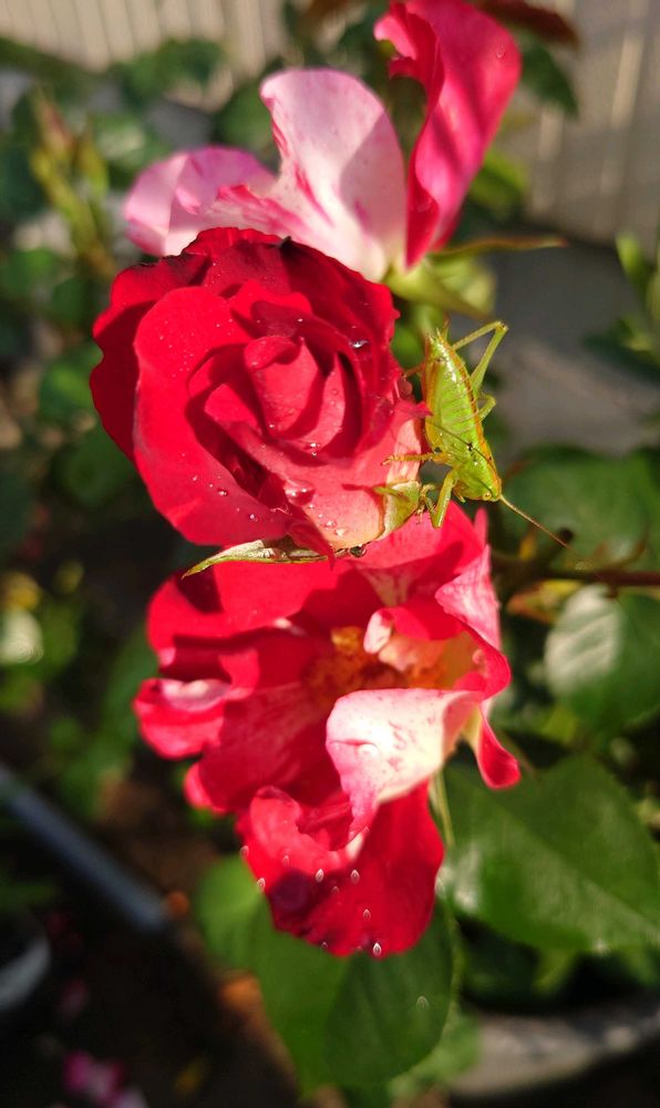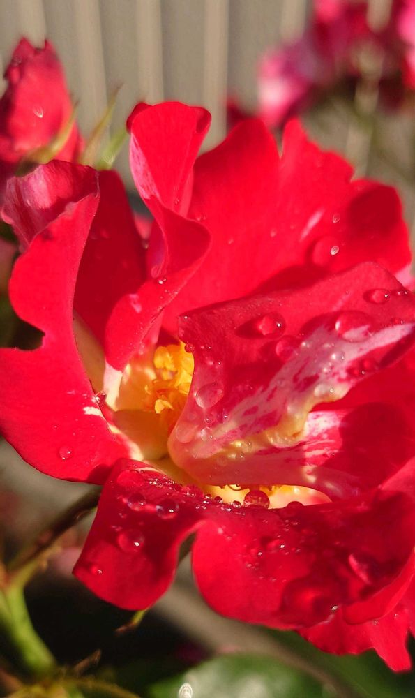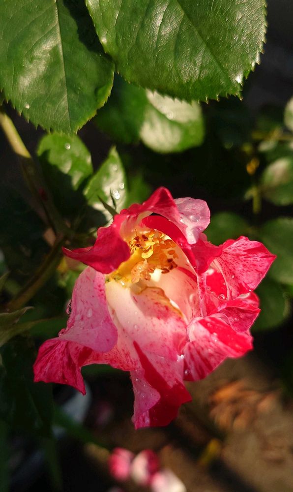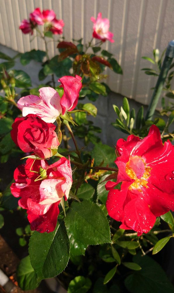 昨日の雨雫が朝日に輝いてます✨️🌹✨️