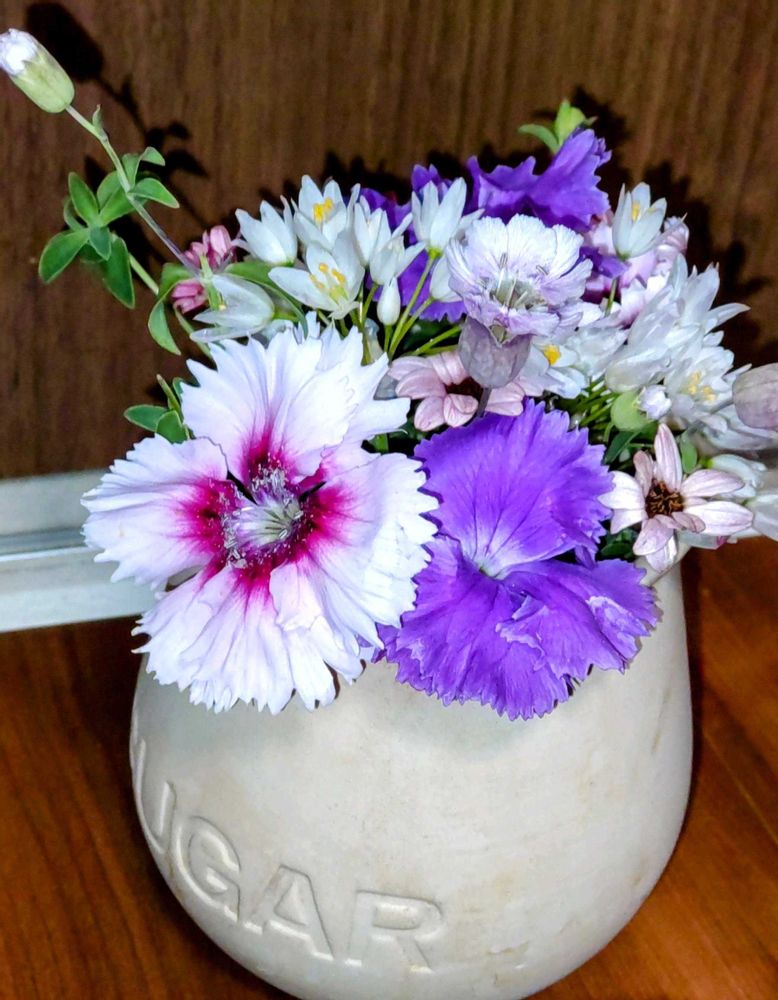 アリウムロゼウム、🤍シレネ・ユニフローラ🩷等の切り花ポットを